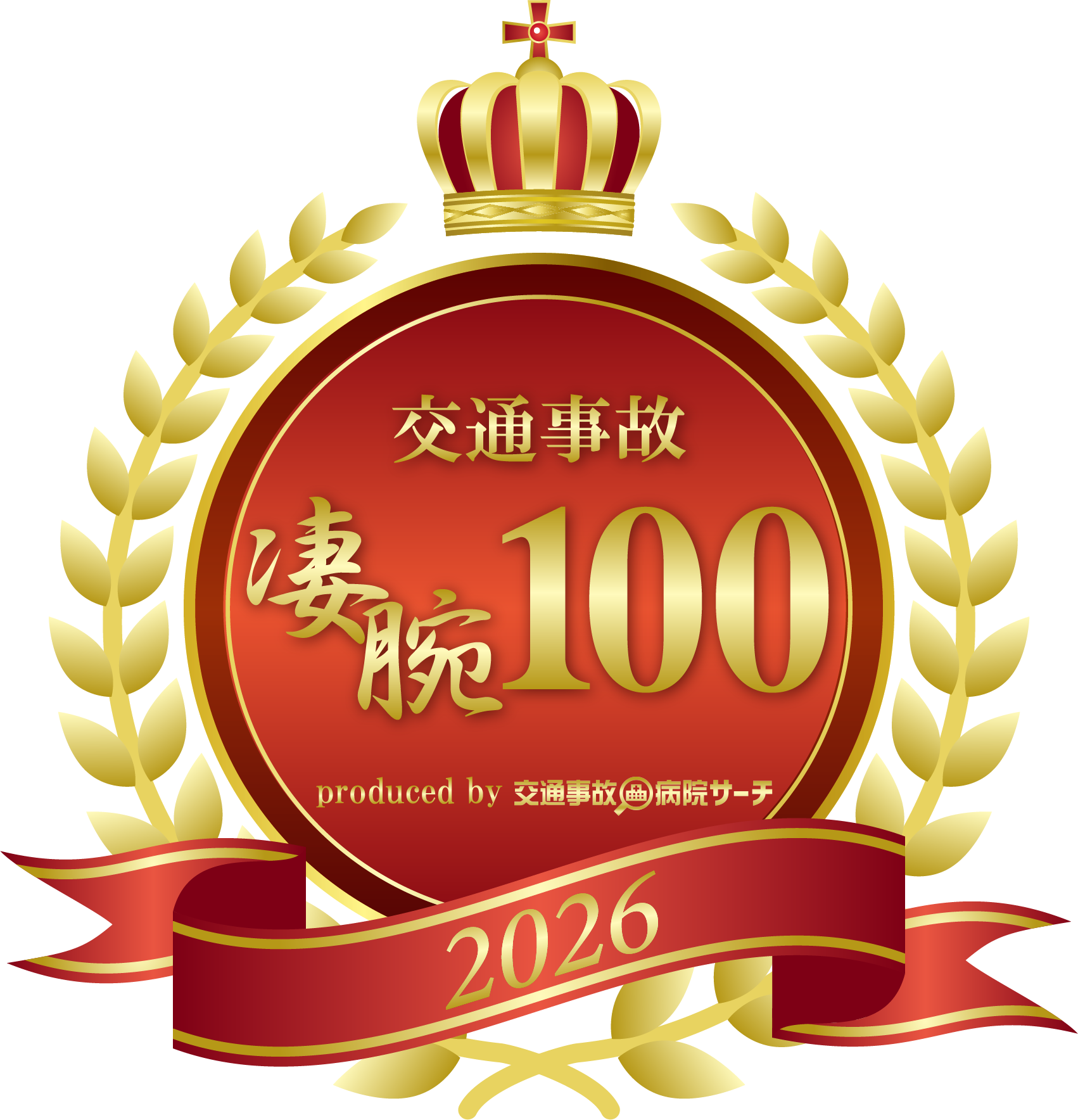 「交通事故凄腕100」とは、交通事故にあわれた患者様の「安心して通える通院先を知りたい」「頼れる先生と出会いたい」とのお声から、適切な施術を提供するだけでなく、常に寄り添う積極的なサポートを行うといった、交通事故凄腕100選考委員会による一定の基準を満たされた先生に対し、認定をしています。