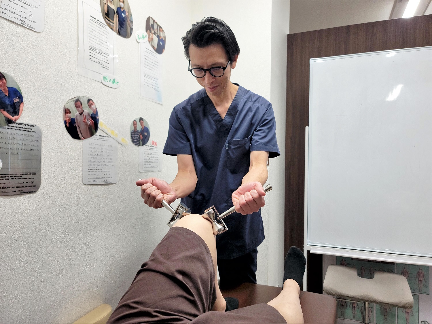 当院では、むちうちの症状に対して、施術機器を使った施術を行っています。筋肉だけでなく、関節や神経にもアプローチし、症状緩和を目指します。